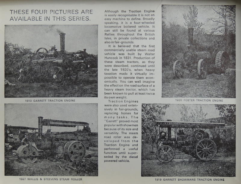 Information sheet giving a short history of the traction engine and showing black & white images of the four engines which make up the series.